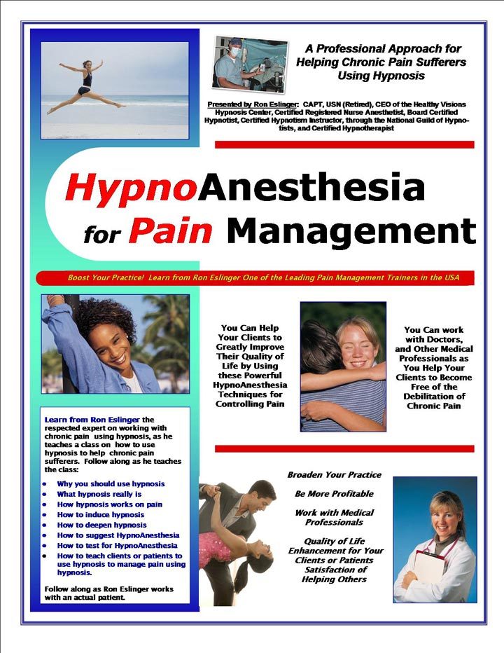 Michael R. “Ron” Eslinger, CRNA, MA, BCH, CI He is the prevailing leader in the field of hypnosis for anesthesia and pain management. His training and experience is simply unsurpassed! This is the knowledge and training you need to make HypnoAnesthesia an important part of your hypnotherapy practice. Train with the leader in hypnosis for pain management!